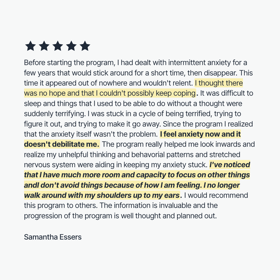 You’ll leave with a clearer map of what’s been keeping your anxiety going and a grounded blueprint for what needs to change for long-term recovery without relying on quick fixes or endless symptom management.